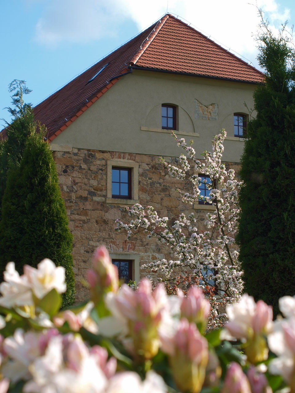 Dom miał ponad 200 lat i właśnie na taki wyglądał. Nie zakochaliśmy się w nim od razu ale zachwyciły detale piaskowcowe portale i kolumny, modrzewiowe stropy, fragmenty szachulca wystające tu i ówdzie spod tynku. Potem był wielki, pierwszy od wojny remont, w trakcie którego wszystkiego musieliśmy nauczyć się sami – gliny, drewna i kamienia.