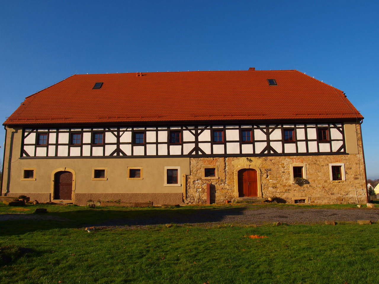Zadbaliśmy by materiały użyte do ratowania domu były jak najbardziej zbliżone do tych sprzed ponad dwóch wieków. Drewno do napraw i rekonstrukcji pochodzi z rozbiórki rówieśników naszego domu, którzy nie mieli tyle szczęścia co on. Piaskowiec jest z okolicznych kamieniołomów. Za to specjalna mieszanka gliniana do szachulca przyjechała z Niemiec.